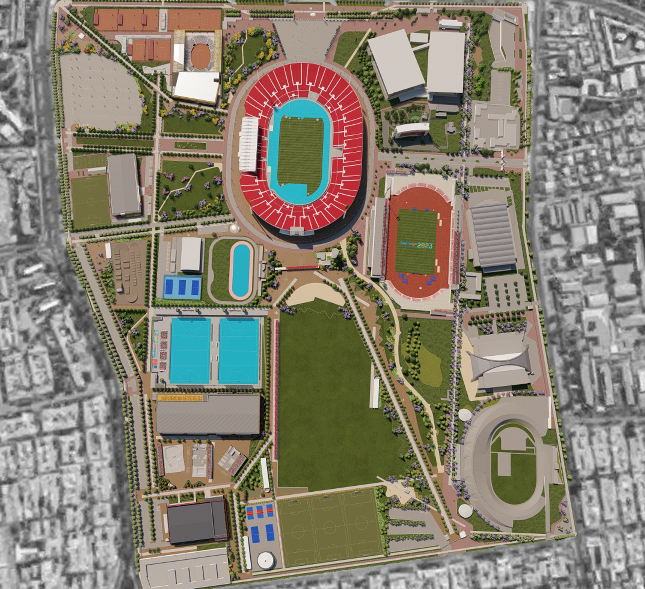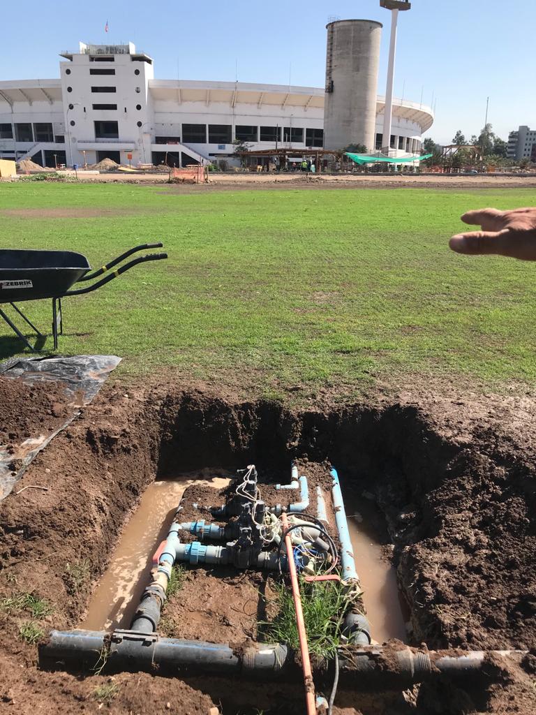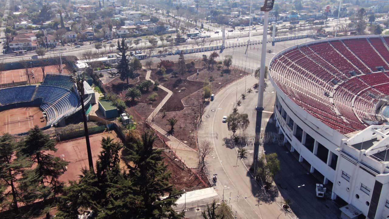 Construcción de las áreas verdes y canchas de césped natural al interior del complejo Estadio Nacional, proyecto que se desarrolló en el marco de la celebración de los Juegos Panamericanos y Parapanamericanos 2023.